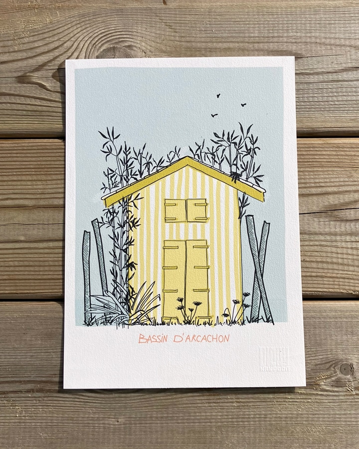 Cette affiche représente une cabane typique que l’on peut retrouver dans les ports tout autour du Bassin d’Arcachon.