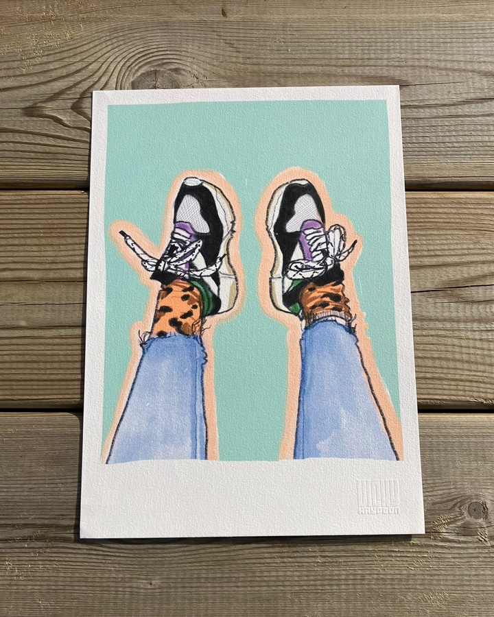 Une affiche au look urbain et décalé avec cette paire de sneakers hyper cool.